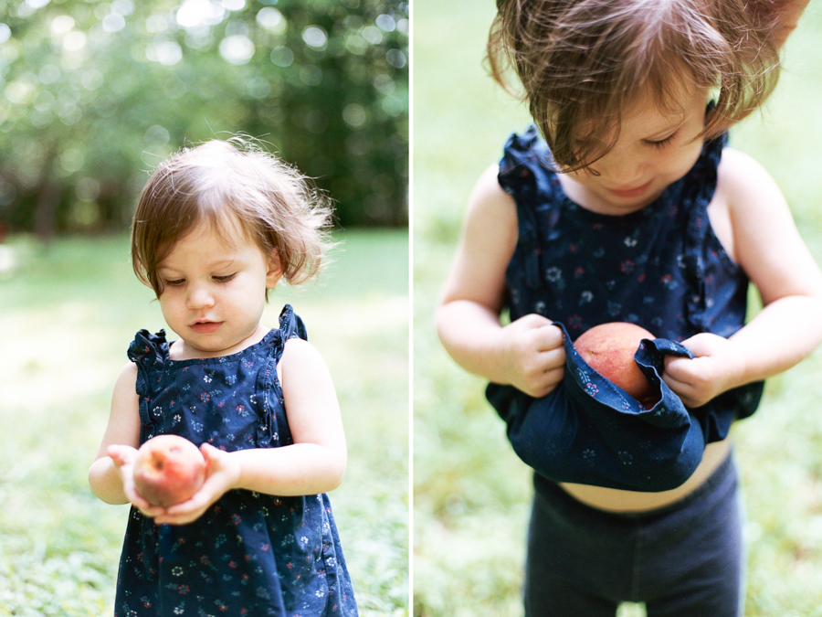 We found a peach tree in our yard. It had four peaches on one branch. We ate them. They were delicious.